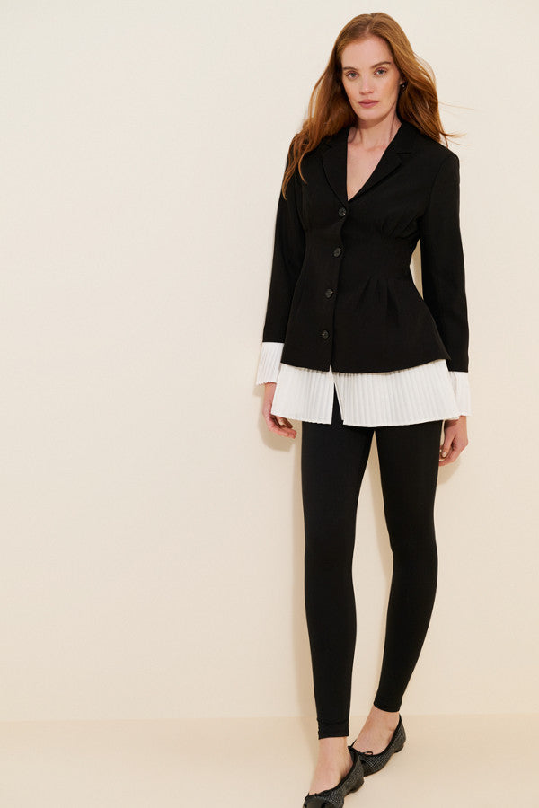Wear this blazer with your favorite pair of dark denim and a black bootie or heel! It also looks amazing as a dress with black tights and a knee high boot - lot's of options with this blazer.