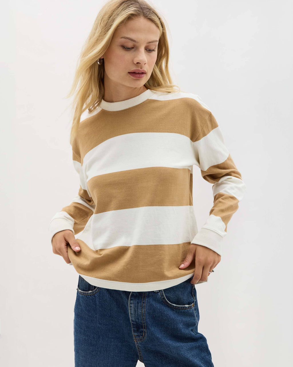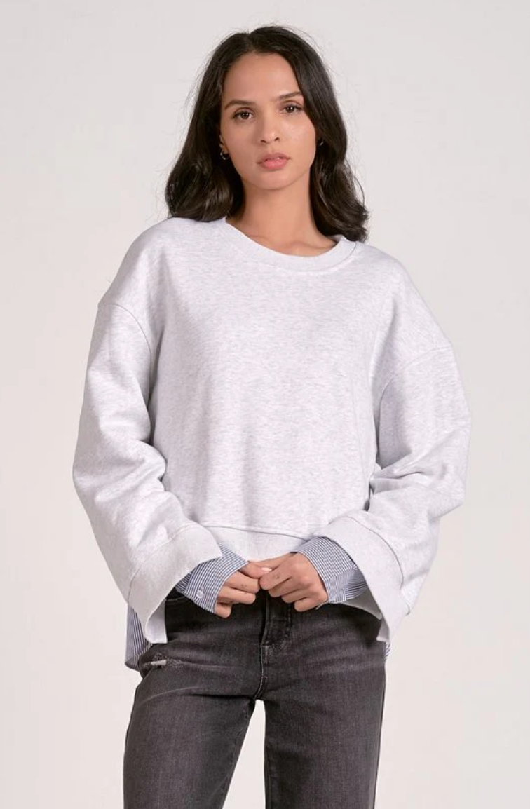 Sally Sweater Top - Oatmeal & White
