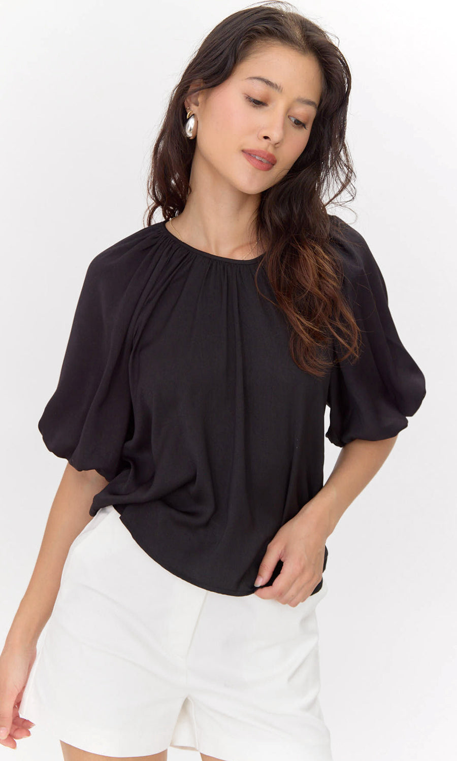 Nadia Balloon Sleeve Blouse - Black