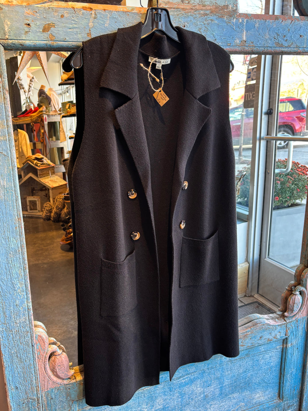 Long Sleeveless Vest - Black