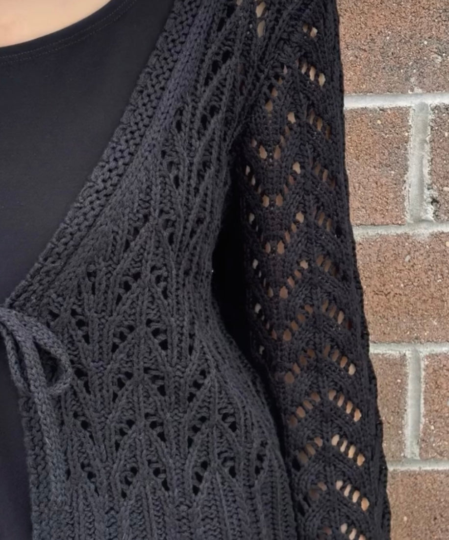 Tie Front Crochet Cardigan - Black