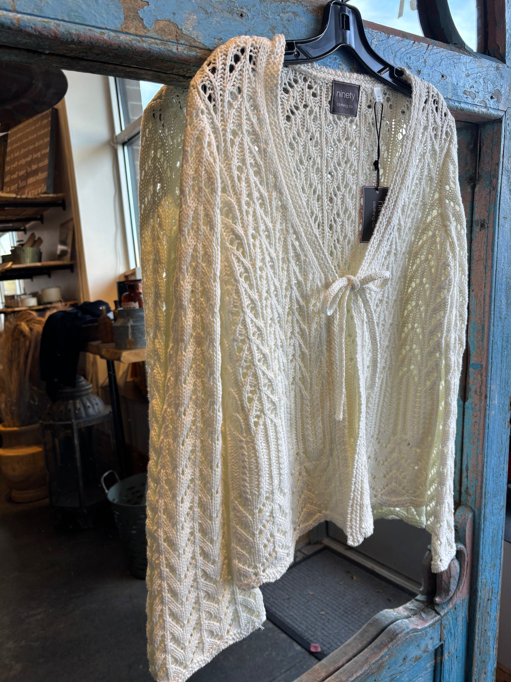 Tie Front Crochet Cardigan - Ivory