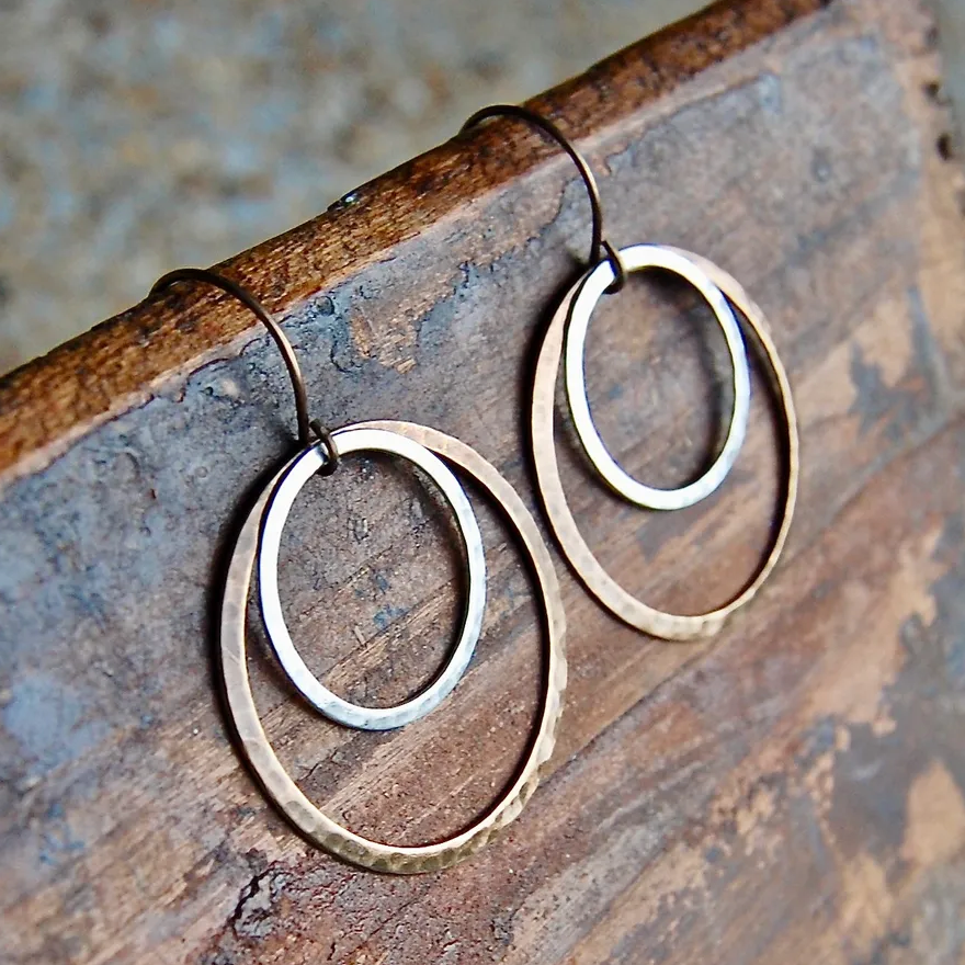 Mixed Metal Hoop Earrings - Matte Gold & Silver