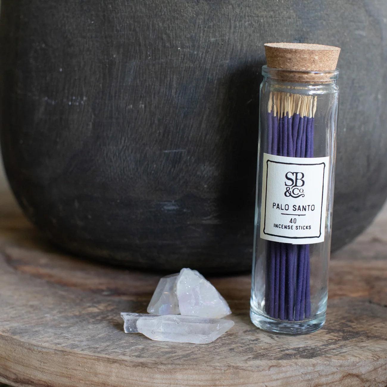 - 40 incense sticks in glass jar with cork top lid (5.6" tall)