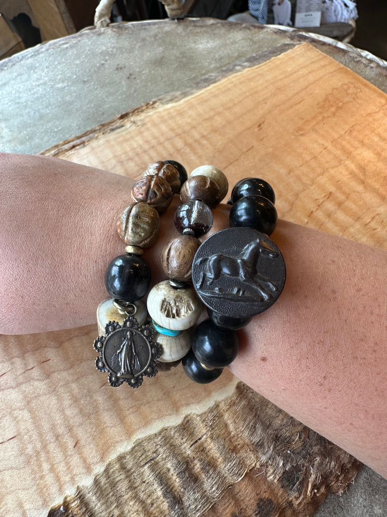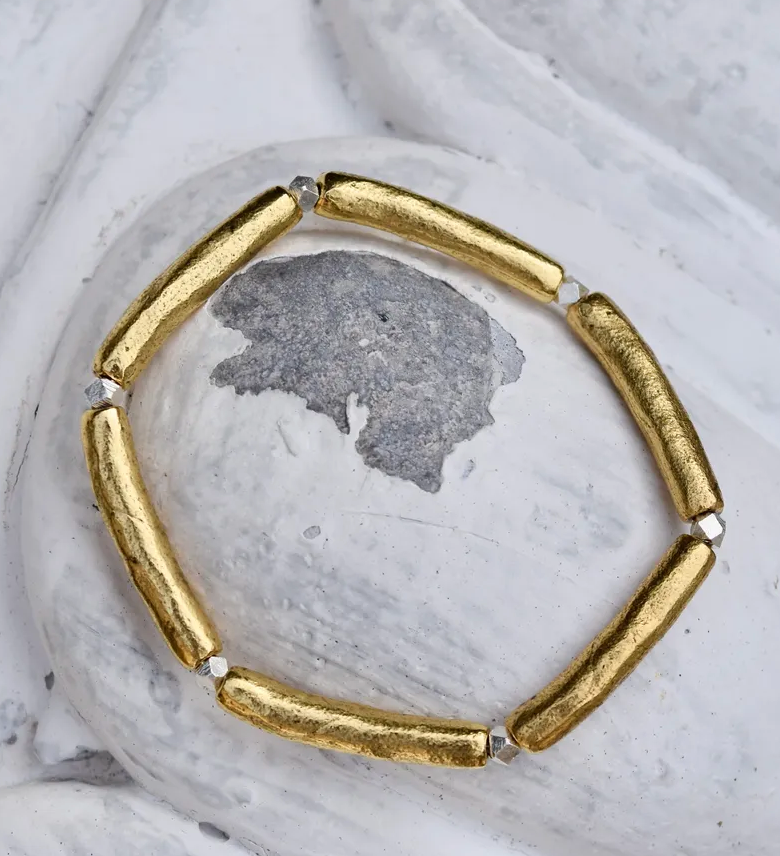 Hammered Gold Bar & Faceted Thai Silver Bracelet