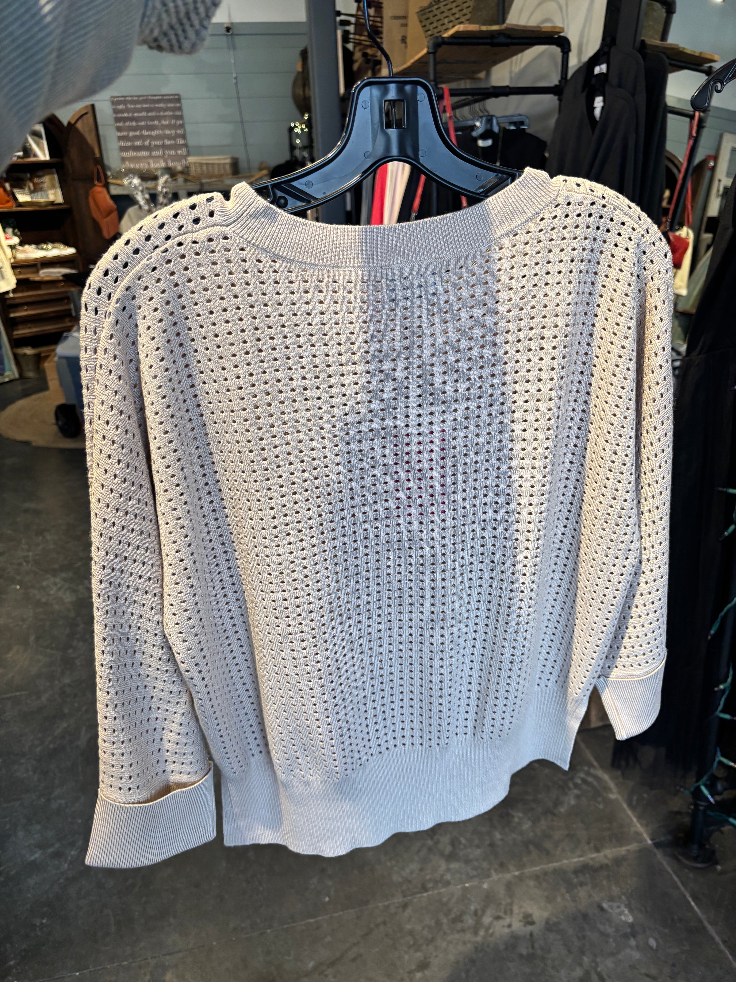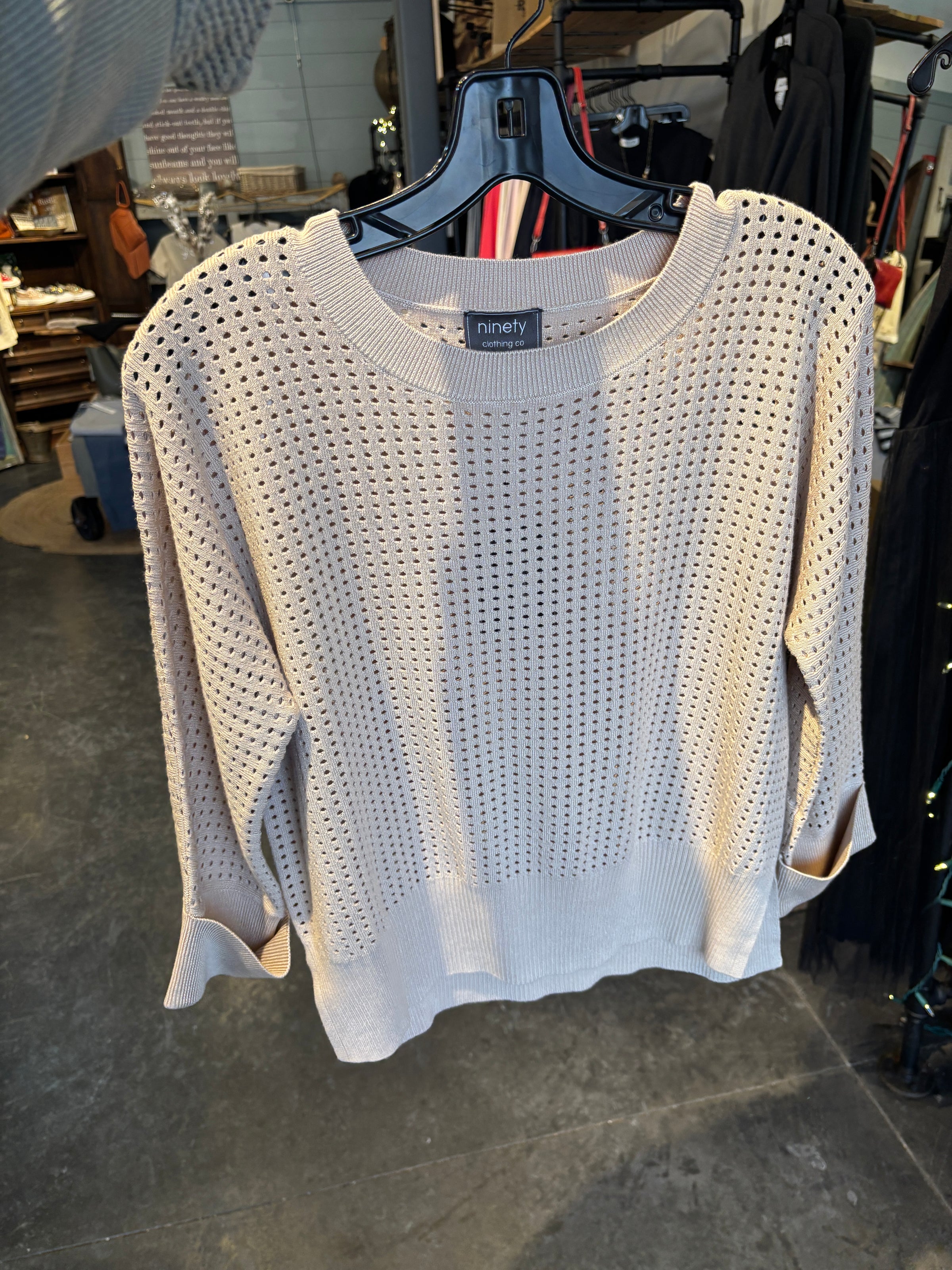 This open knit sweater is your new favorite piece for those in-between days when the weather can't make up its mind. The airy knit keeps things breezy while the relaxed fit lets you move freely, whether you're running errands or grabbing coffee with friends. Throw it over a tee and pair it with your favorite jeans.