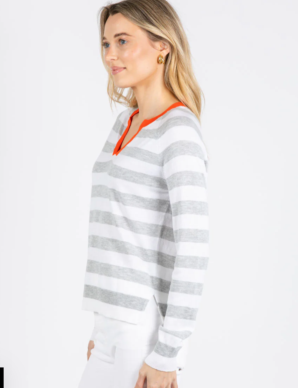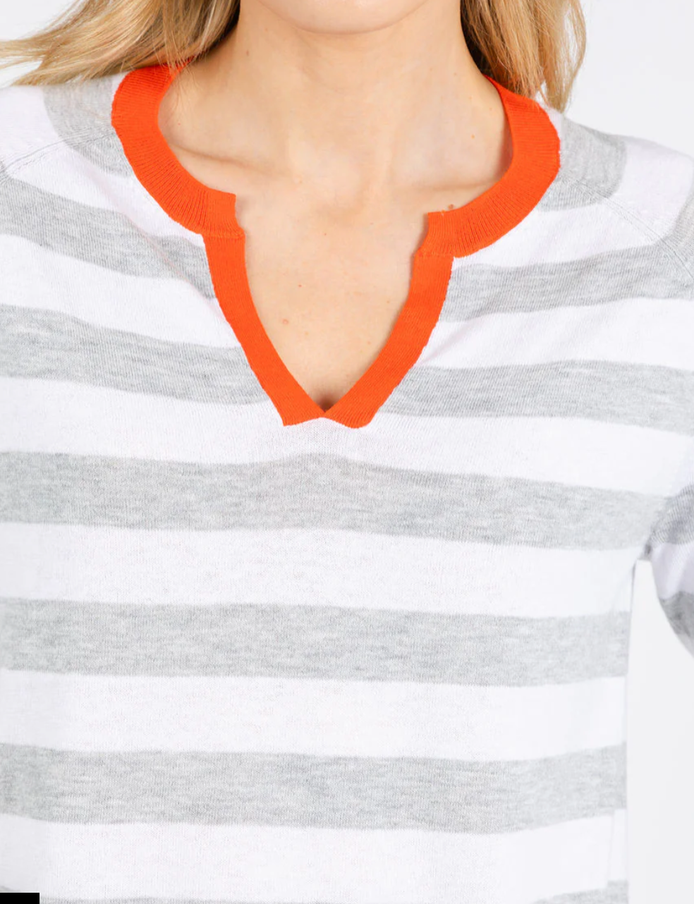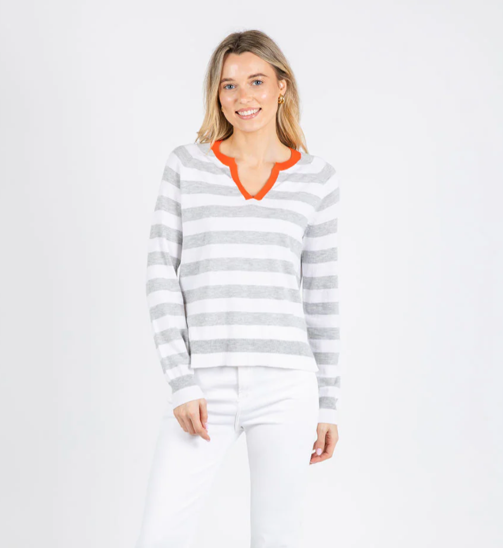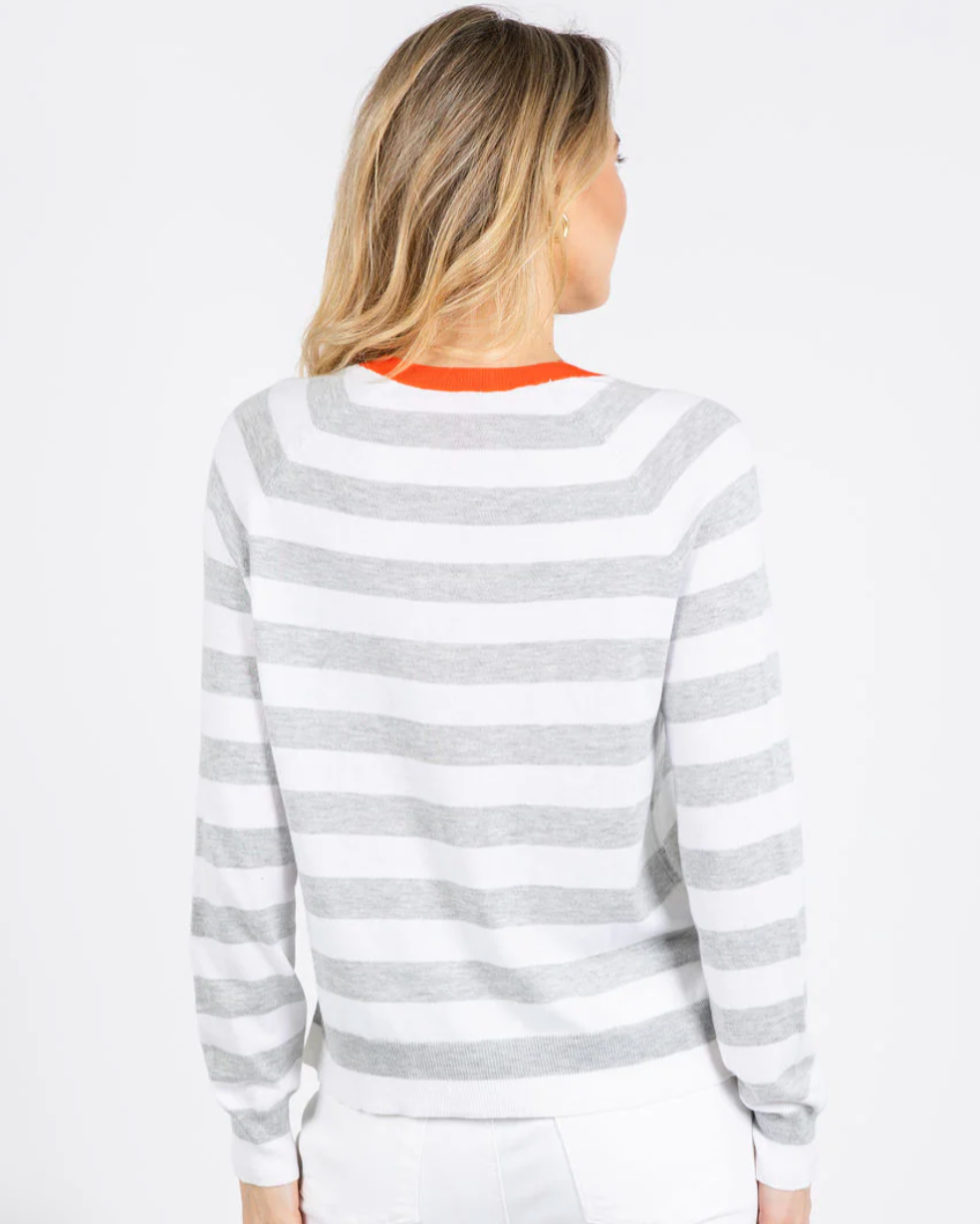 Stripe Henley Sweater - White & Grey