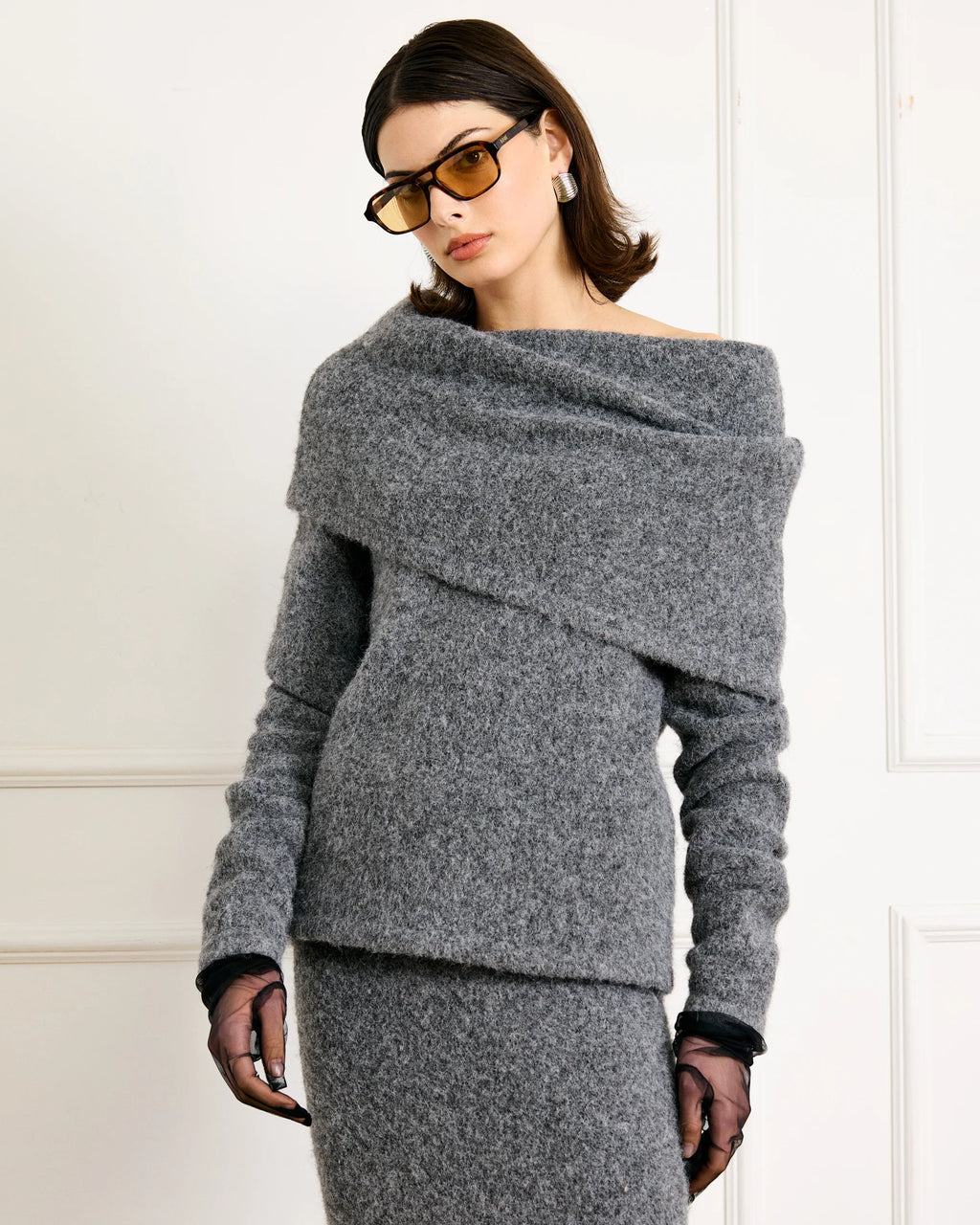 Feather Yarn Boxy Sweater Vest - Light Grey