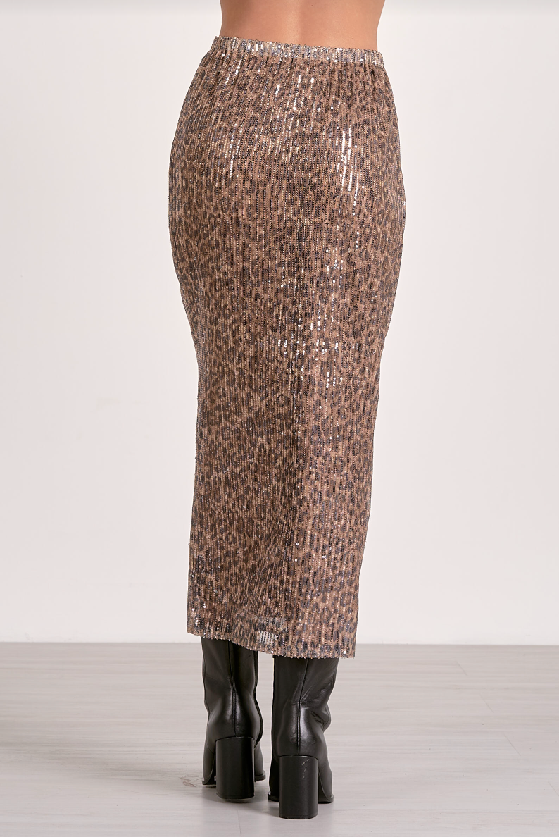 This midi-length sequin skirt delivers all-out sparkle with a flattering high-rise fit and a fluid drape that moves with you. It’s the perfect holiday statement piece — style it with a sleek knit, a silky cami, or a tailored blazer for head-turning glamour.