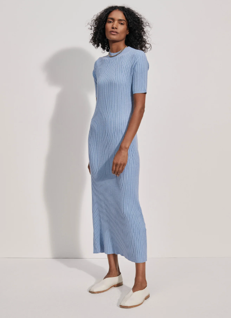 Maeve Rib Knit Midi Dress - Ashley Blue