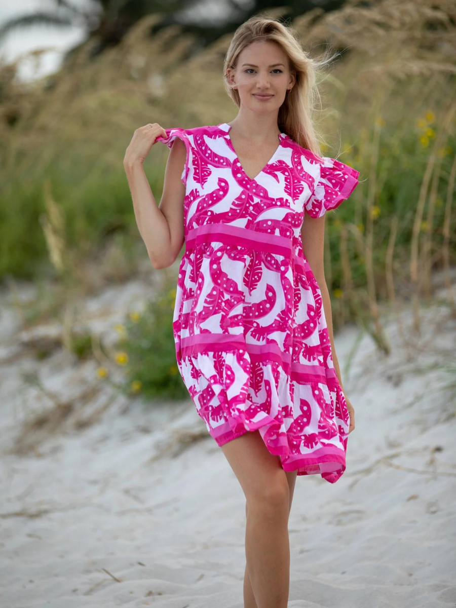 Crinkle and Mesh Floral Print Fit and Flare Dress