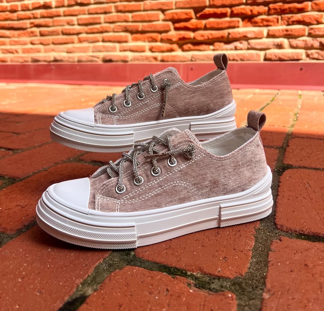 Slip into comfort with these neutral go to sneakers in the perfect color for all seasons wear.