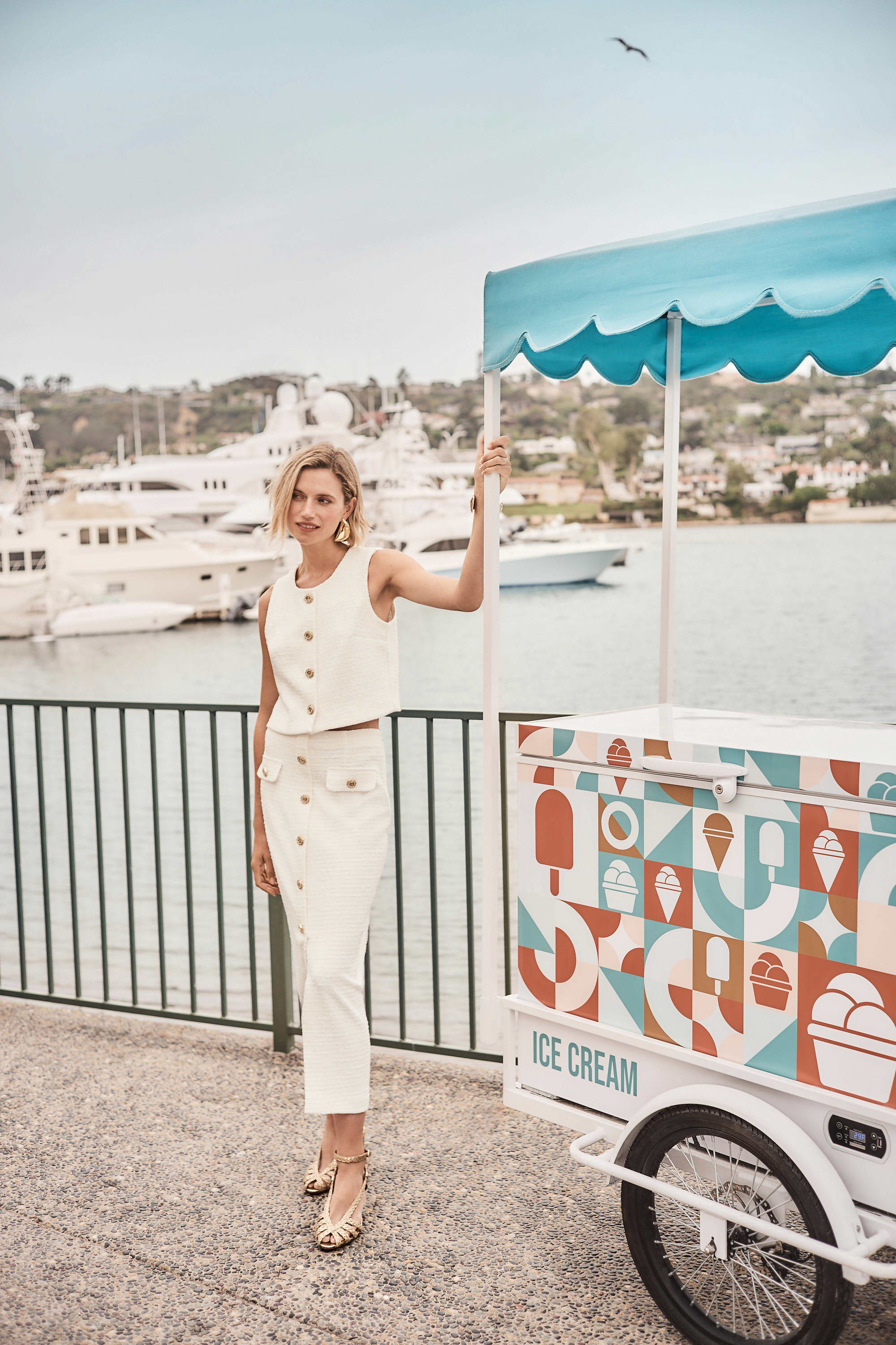 Bouclé Pencil Skirt With Gold Buttons - Off White