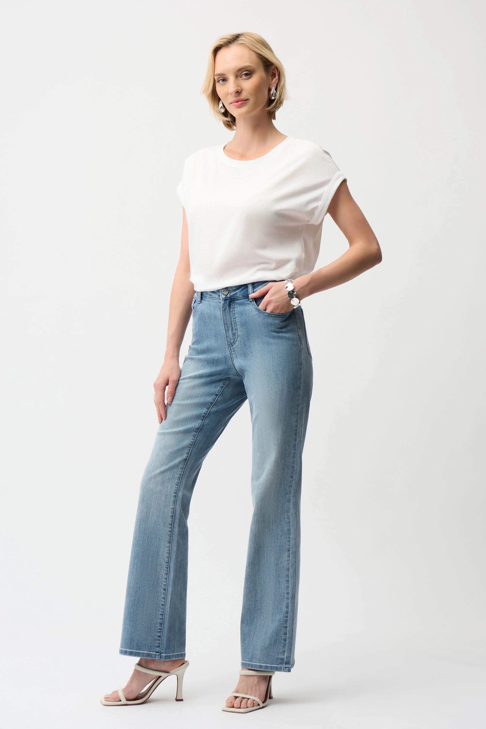 Joseph Ribkoff FEATHERWEAVE denim, these fab jeans fit for a star pair just as well with a flowy blouse and heels, as with ankle boots and a graphic tee. The combinations are endless. 251967