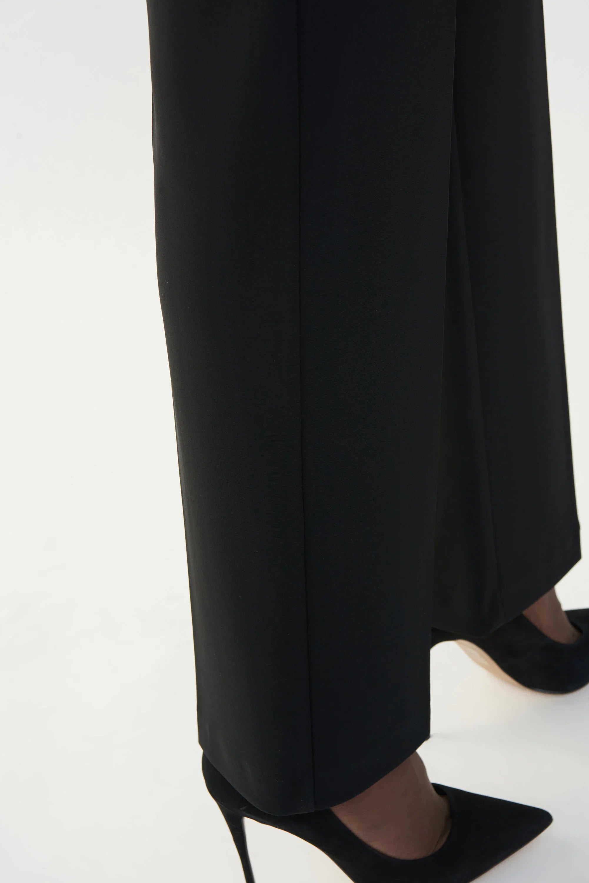 Create the illusion of longer legs with a slightly higher waistline in these wide-leg pants. The 32-inch inseam creates a lengthening effect especially when paired with a tucked-in blouse and fashionable heels. The silky knit fabric and elasticized waistband offer class with unparalleled comfort...