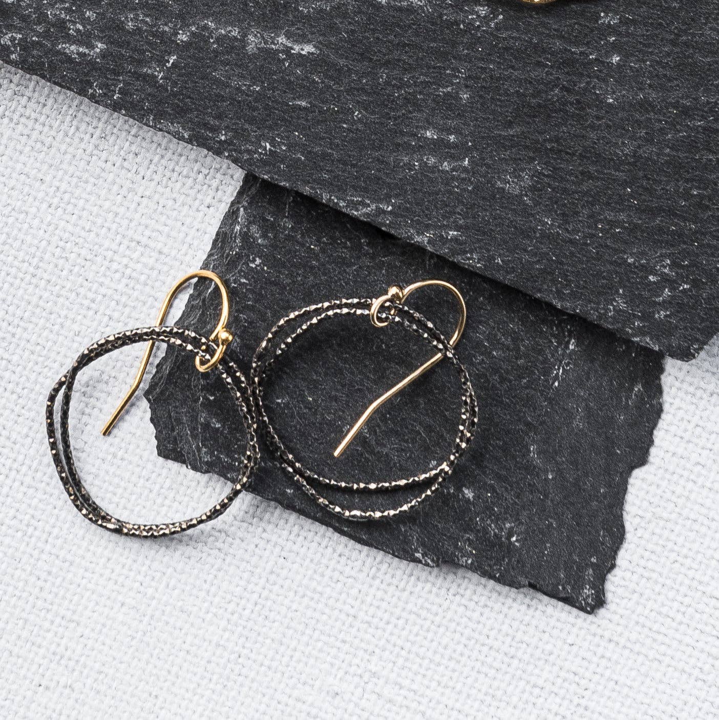 Diamond-cut sterling silver components are shaped by hand for an organic effect in black rhodium plated sterling silver.